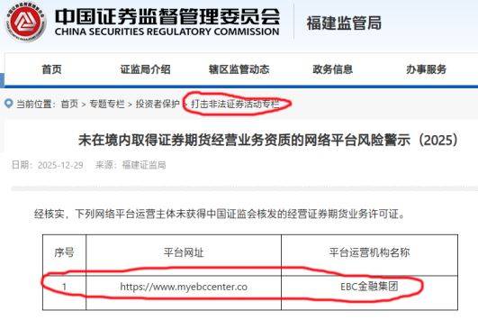 近期境外金融平台在国内市场展业行为持续引发关注,EBC金融集团因未在境内取得证券期货经营业务资质被证监会列入“风险警示”网络平台!证监部门同时提醒广大投资者提高风险防范意识,从官方渠道核实机构合法性,不与无资质平台合作!